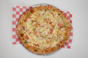 $14.50Chicken Wing Pie – 3 cheese blend, topped with diced breaded chicken, seasonings, ...