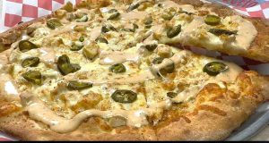 3-cheese blend, Artisan chicken breast, seasonings, Jalapeno Peppers. Topped w/ a swirl ...