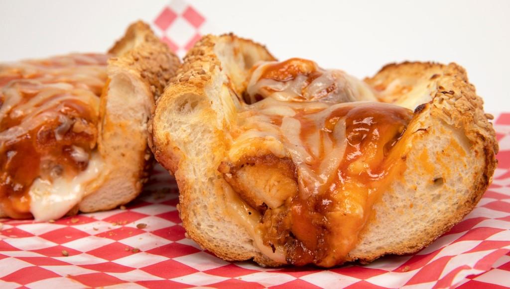 Sliced chicken tenders, (1/2 lb, lg), bleu cheese, , three-cheese blend, our special seasonings, and your favorite wing sauce, served with wing sauce on the side [Sassy_Social_Share]