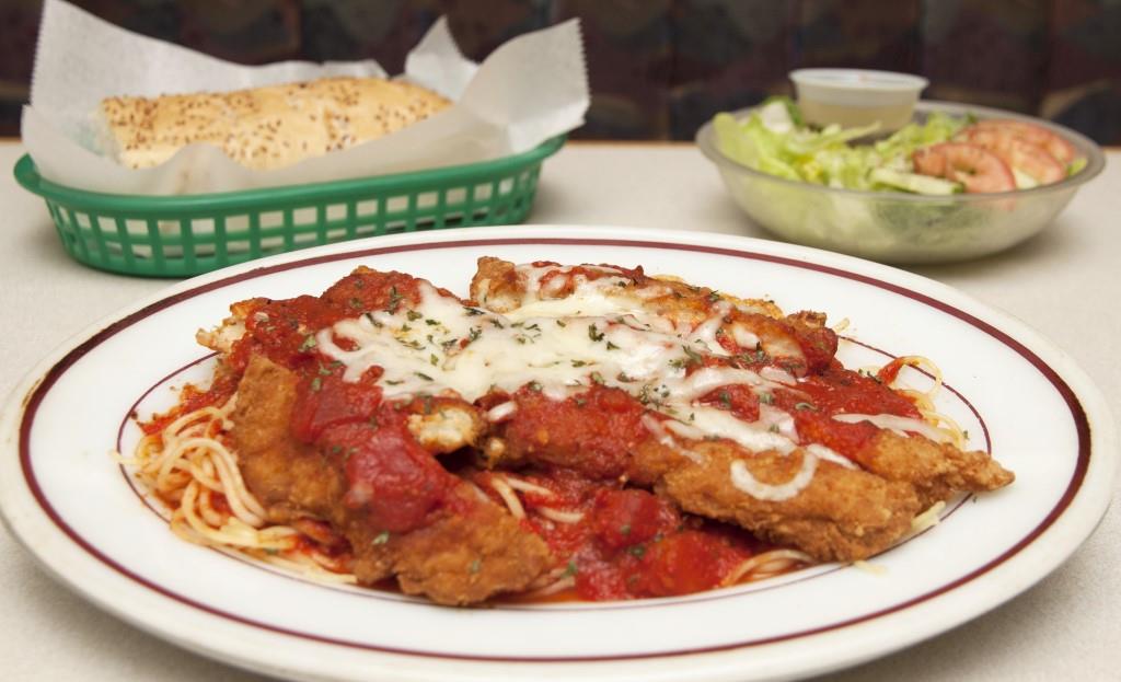 Chicken Parmigiana over Pasta – (1/2 lb. of Tenders)